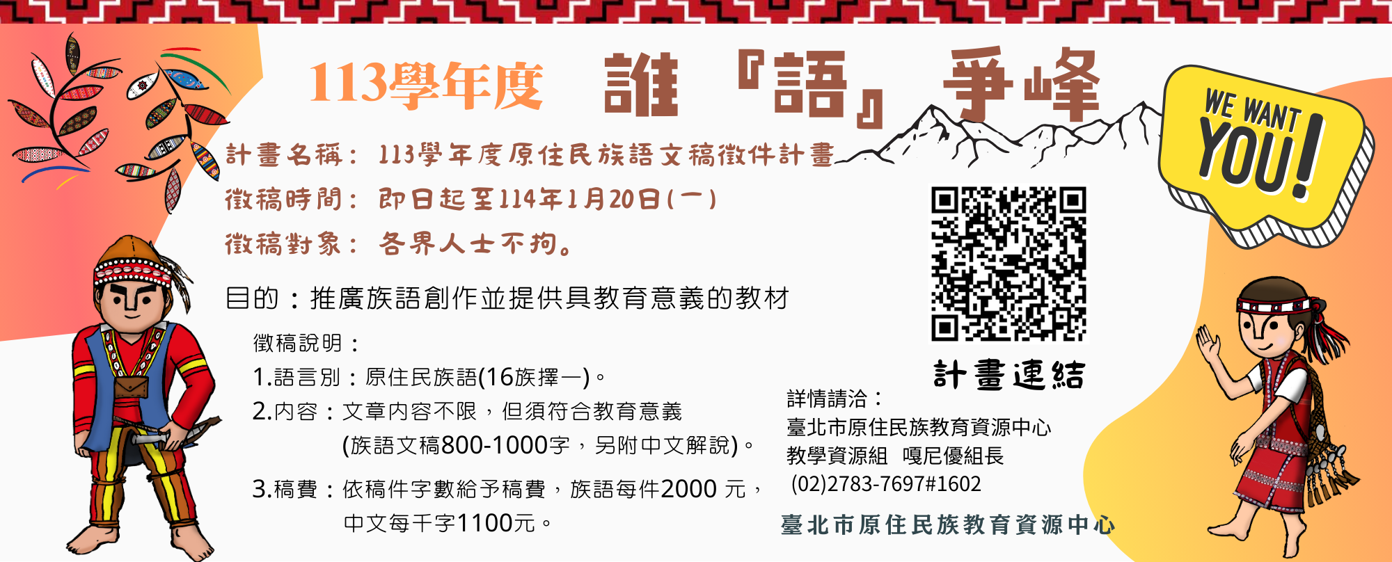 2、內容:文章內容不限,但須符合教育意義(族語文稿