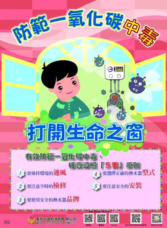 4、使用瓦斯器具要開窗通風,避免一氧化碳中毒。