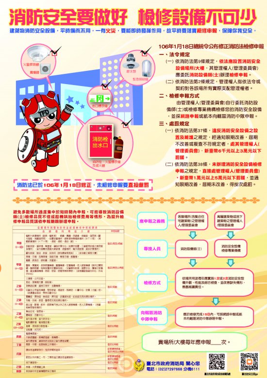 2、住宅防火10大招:1.隨手捻熄菸蒂;2.定期清理排油煙管;3.勿堆積雜物防止縱火;4.嚴禁孩童玩火釀災;5.使用防焰物品防止延燒;6.裝設鐵窗要預留開口;7.烹煮食物記得人離火熄;8.置滅火器可初期滅火;9.裝住警器可及早通報;10.學習用火用電安全知識。