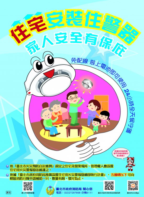 5、維護居家安全請裝設住宅用火災警報器,可及早偵知火災及發出警報聲響,提醒住戶儘早逃生,確保安全。