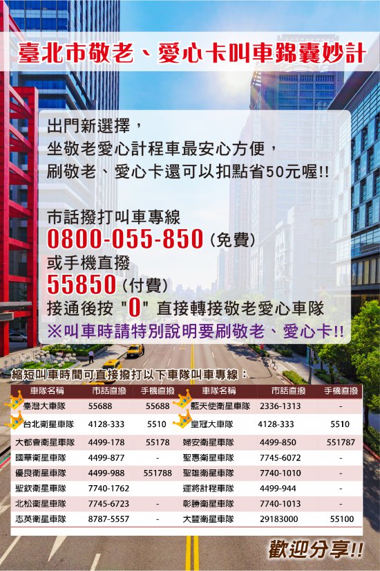 轉知本府社會局提供敬老、愛心卡叫車錦囊妙計宣導DM,請本校退休人員參考運用。