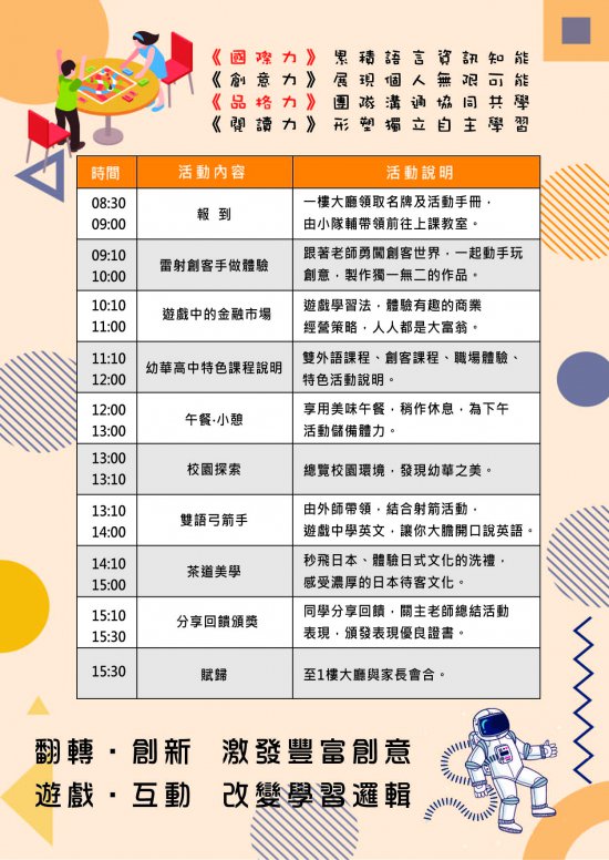 三、報名日期:即日起開放線上報名(依報名順序優先錄取國九,額滿為止)。