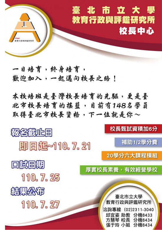 一、隨函檢附招生計畫及海報各1份,敬請協助公告,報名時間 自即日起至7月21日(星期三)23時59分。