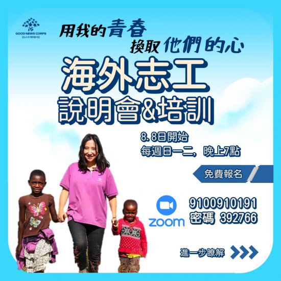 (一)110年8月8日起:於每星期日、星期一及星期二晚上辦理 國際青少年聯合會海外志工(GNC)線上說明會。