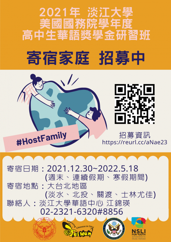 (四)補助金額:寄宿家庭可獲每日新臺幣1,000元整之補 助。 (五)檢附徵選計畫海報,報名網址:https://forms.gle /xSRPtVmrwEdGN55w9。