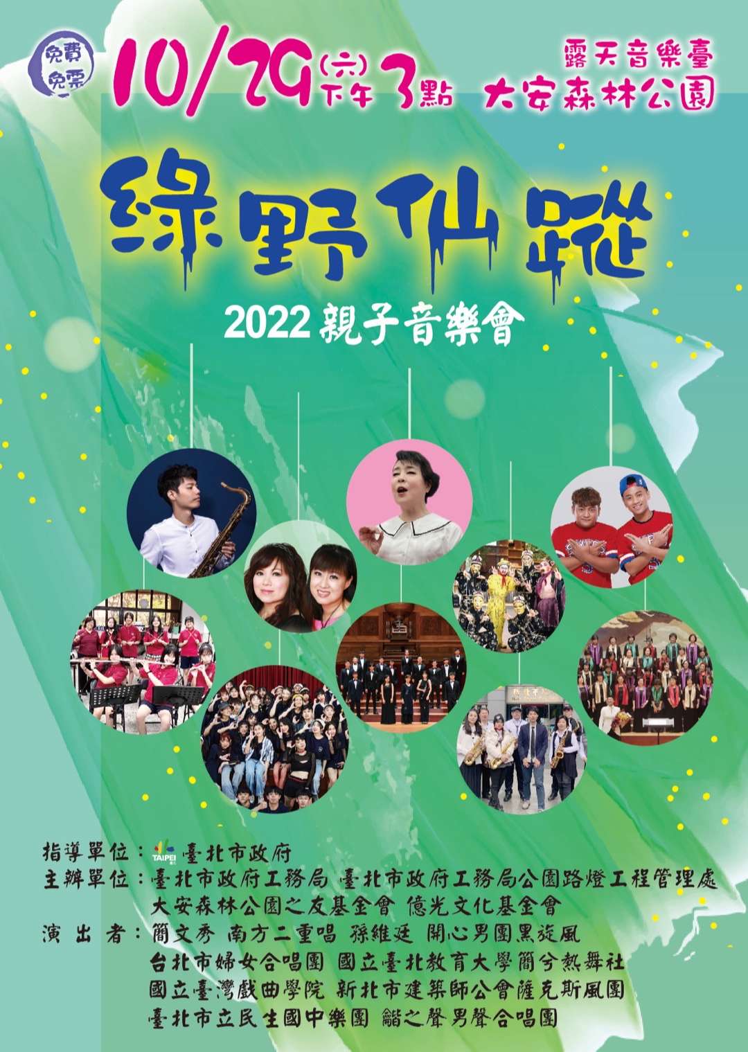 一、案係本處與財團法人億光文化基金會及財團法人大安森林 公園之友基金會訂於111年10月29日假大安森林公園露天音 樂台共同主辦旨揭活動。