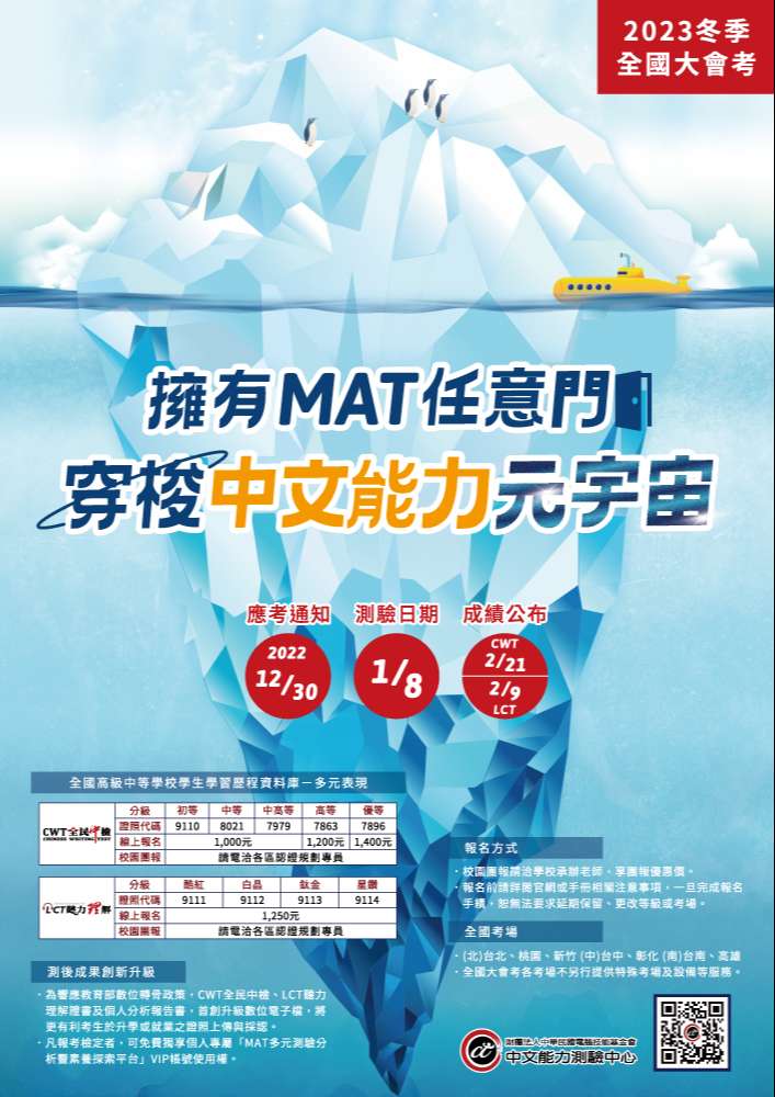 三、報名期自2022年10月1日起至2022年11月30日截止,如貴校報名人數滿100人(含)以上,可向本中心申請在校施測優惠 專案。