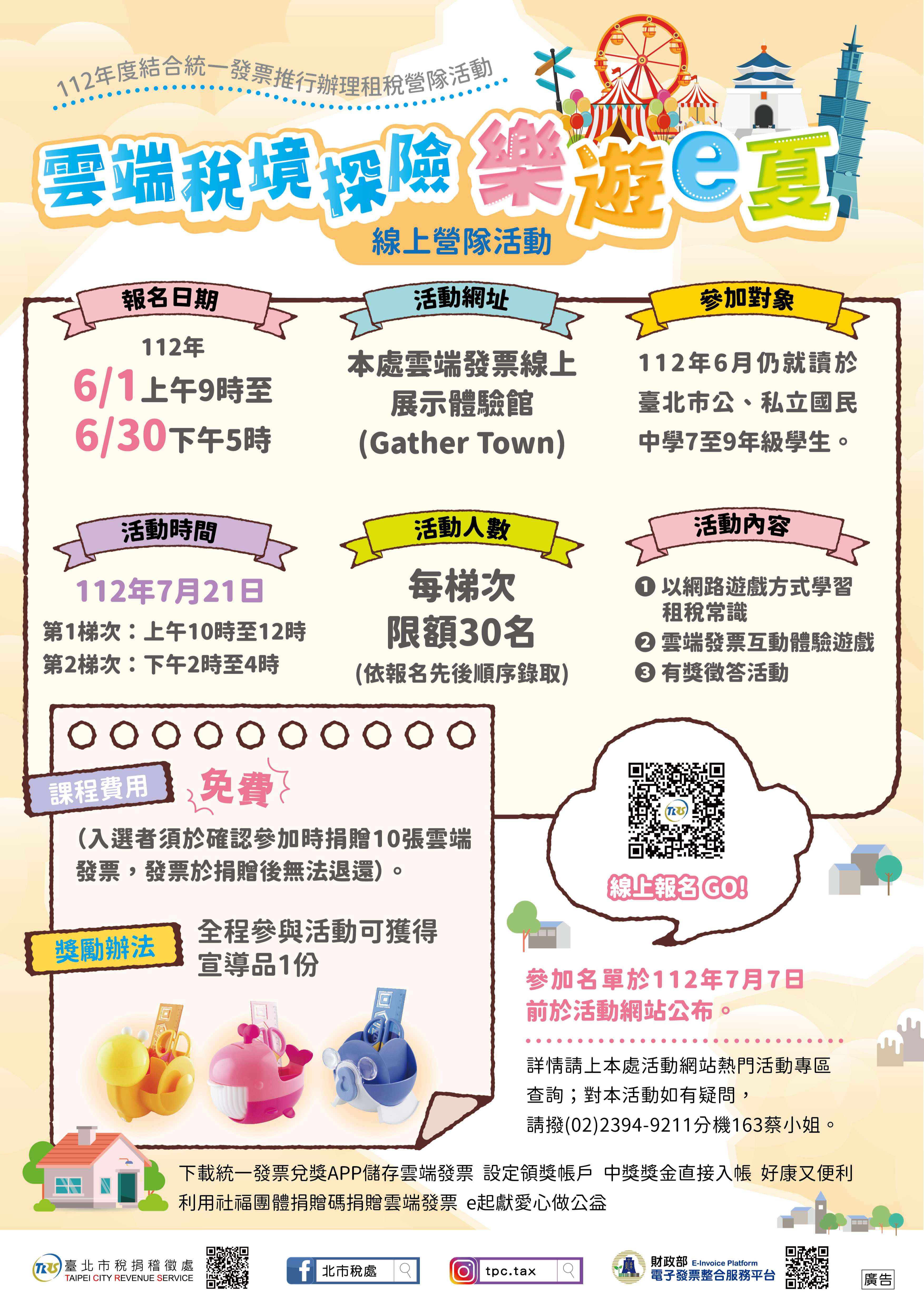 (三)報名資格:112年6月就讀臺北市公、私立國民中學7至9年級學生,每梯次限額30名。