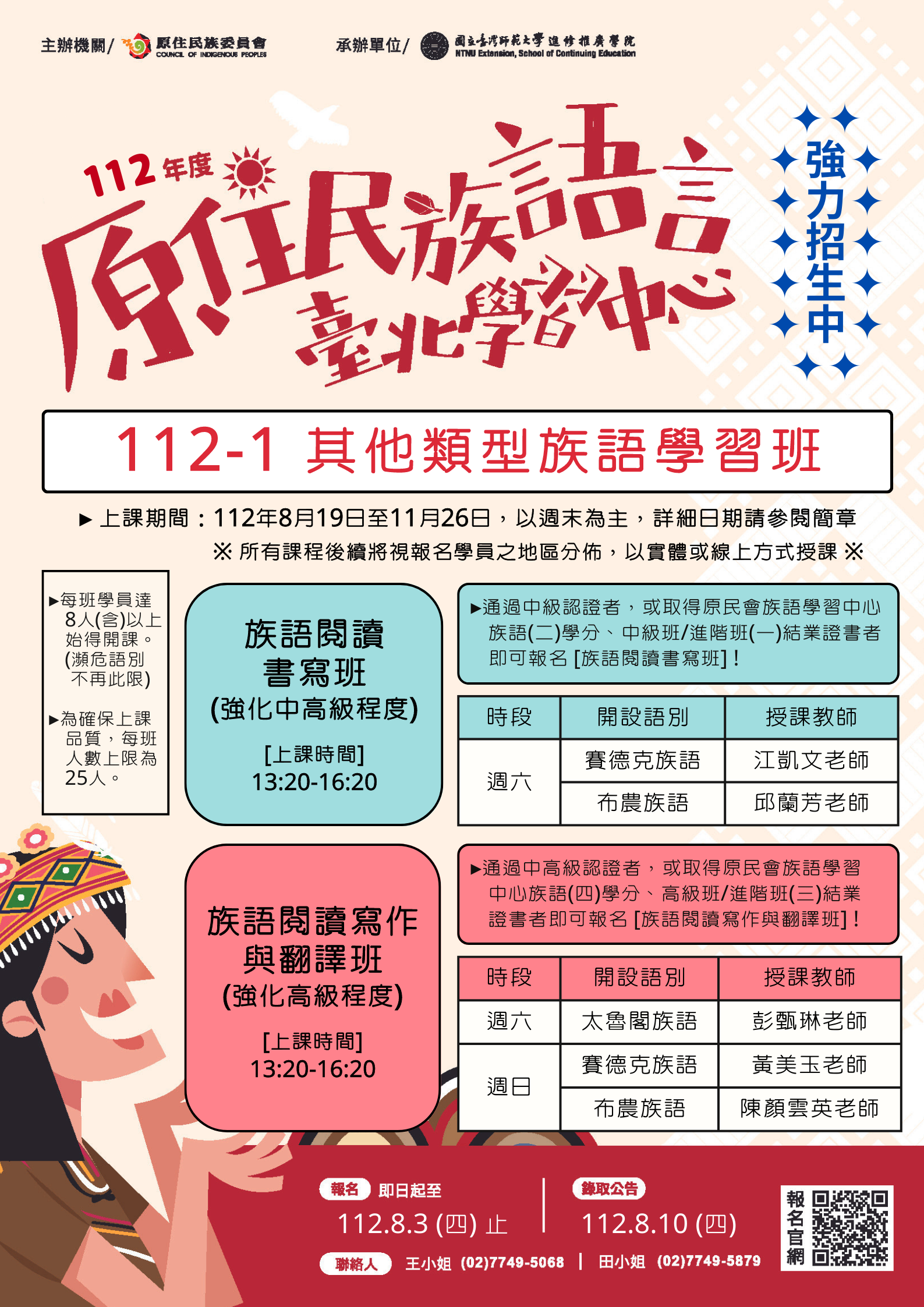 (一)原住民族語言臺北學習中心公務信箱:scettlc@deps.