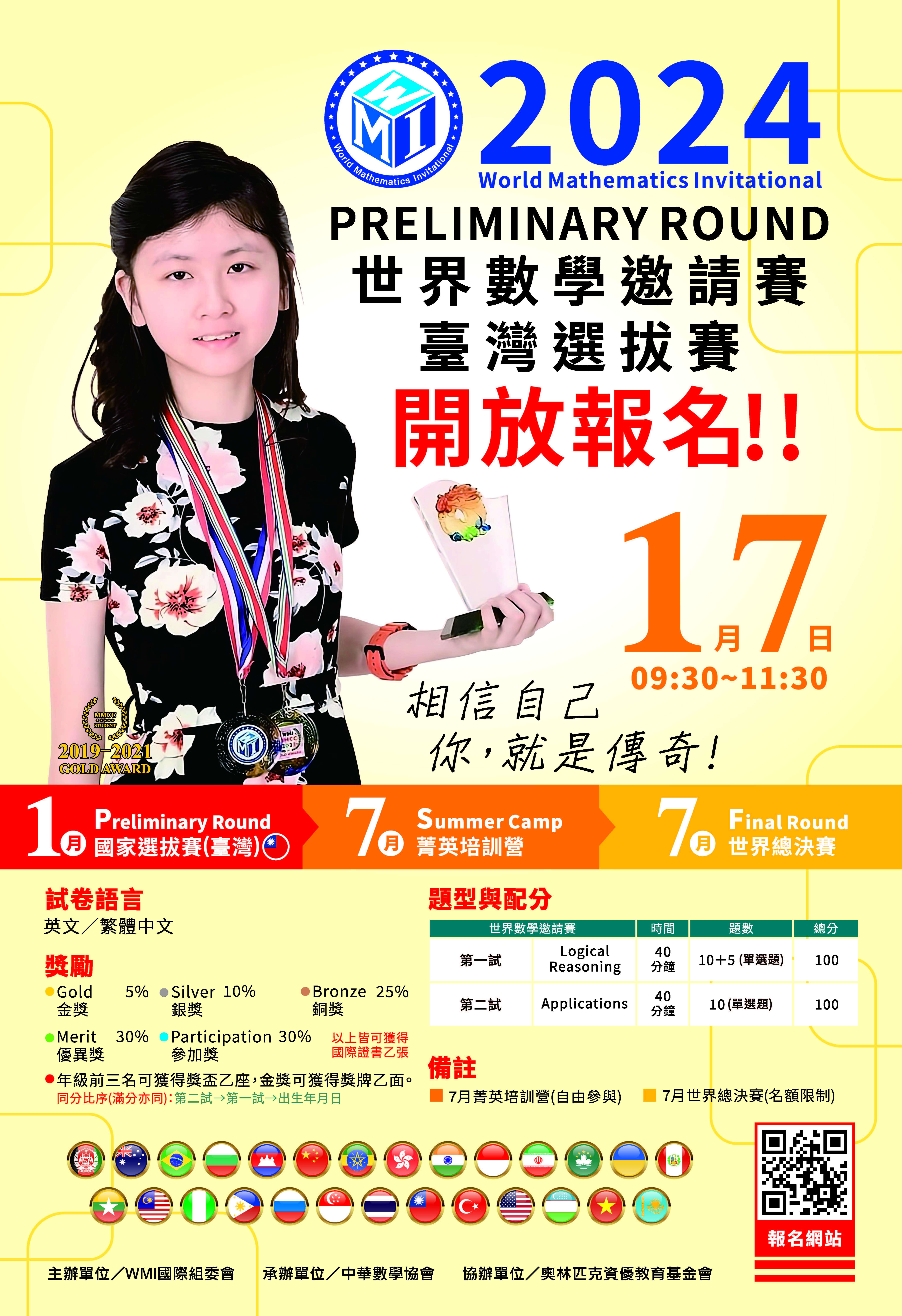 三、「WMI世界數學邀請賽-2024臺灣選拔賽」,凡就讀臺灣各
