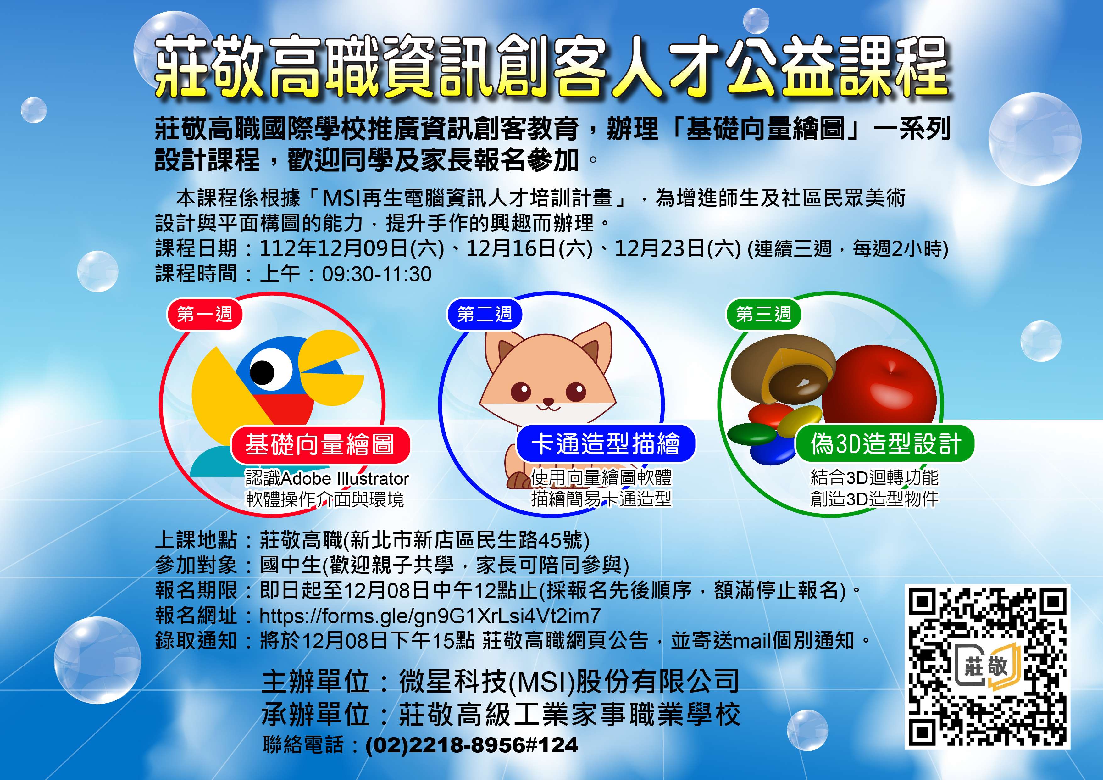 七、錄取通知:將於12月08日下午15點 莊敬高職網頁公告,並寄送mail個別通知。