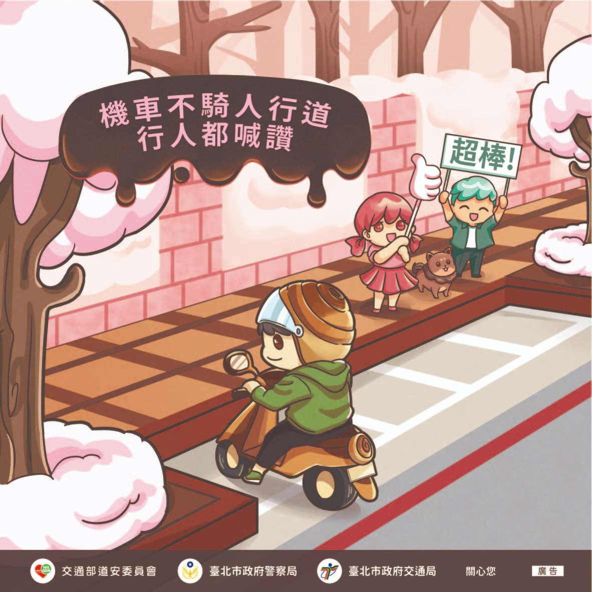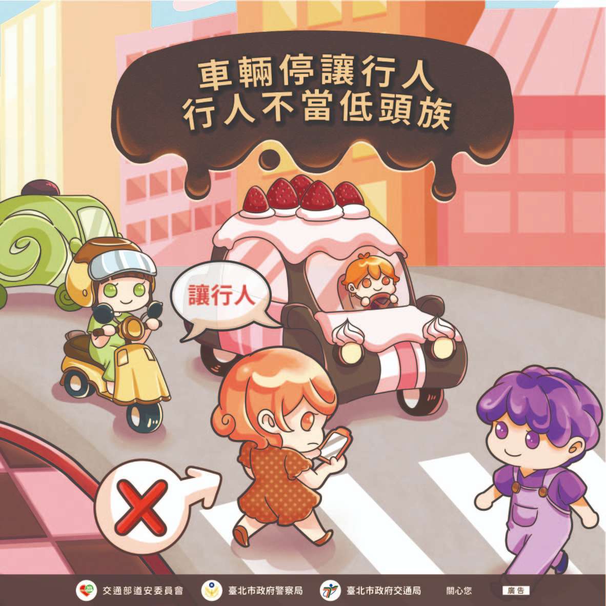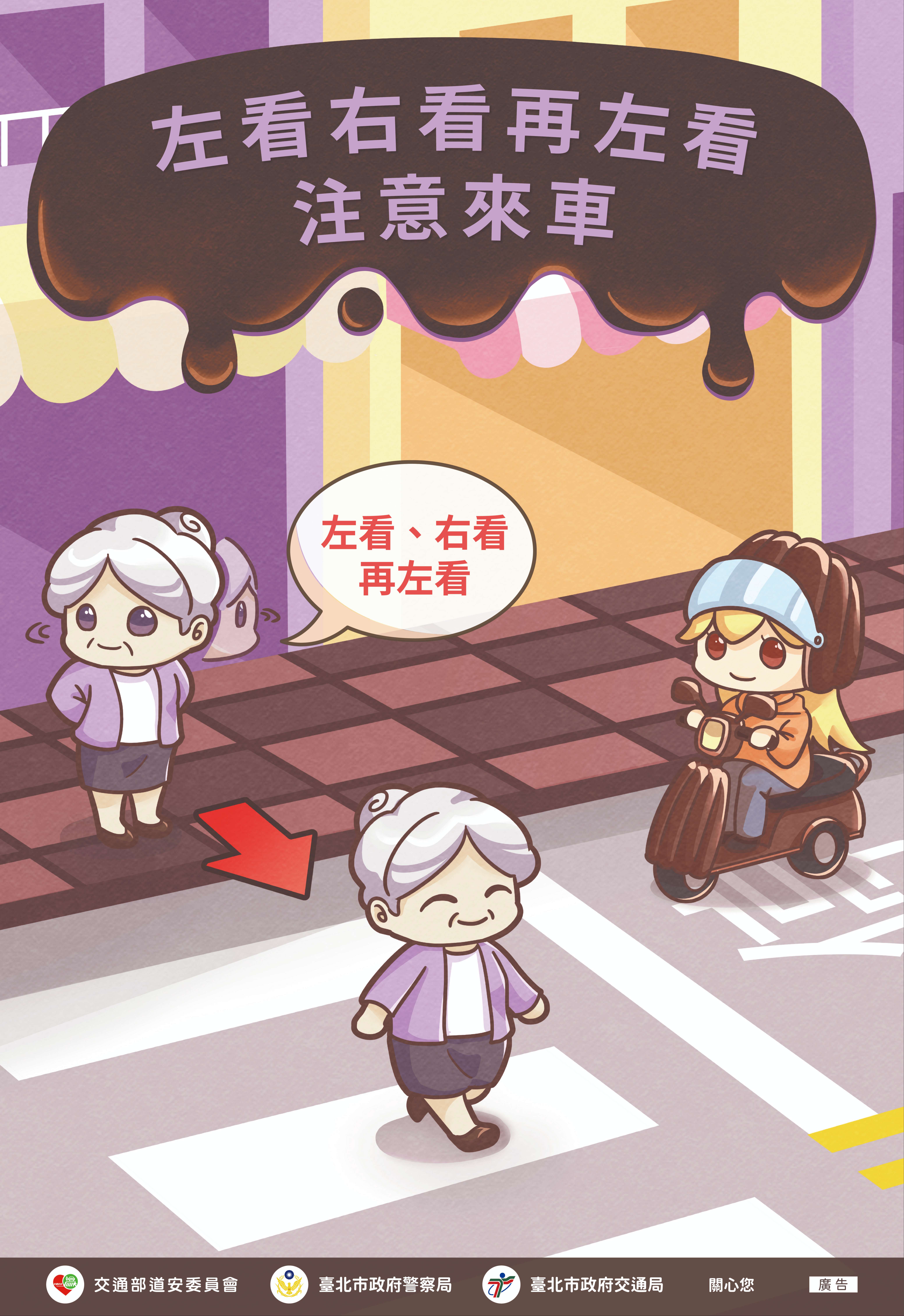 一、本市為營造行人友善環境,訂有「臺北市交通安心行計 畫」,針對路段、路口、車輛及其他層面全面進行改善, 擬訂「通暢行人環境」、「確保路口行人安全」、「提升 大車轉彎安全」及「落實人本理念的道路設計」4大主軸分年實施改善。