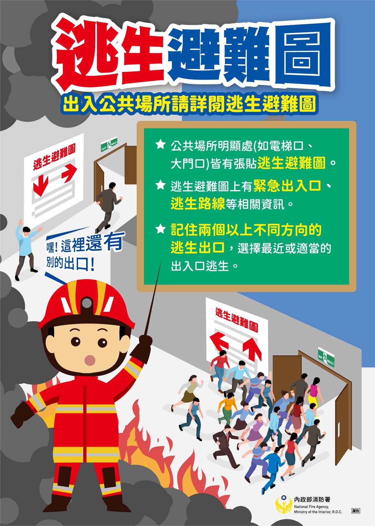 113年10月份以「公共場所消防安全」為防災宣導主題,彙整宣導影片2部、圖片3張、動畫1則,為了推動防災意識及觀念,提醒民眾進入公共場所應保持警覺,確認場所是否張貼「不合格場所」告示,並留意消防安全設備位置及逃生動線,請大家小心謹慎,以確保自身安全 !!!