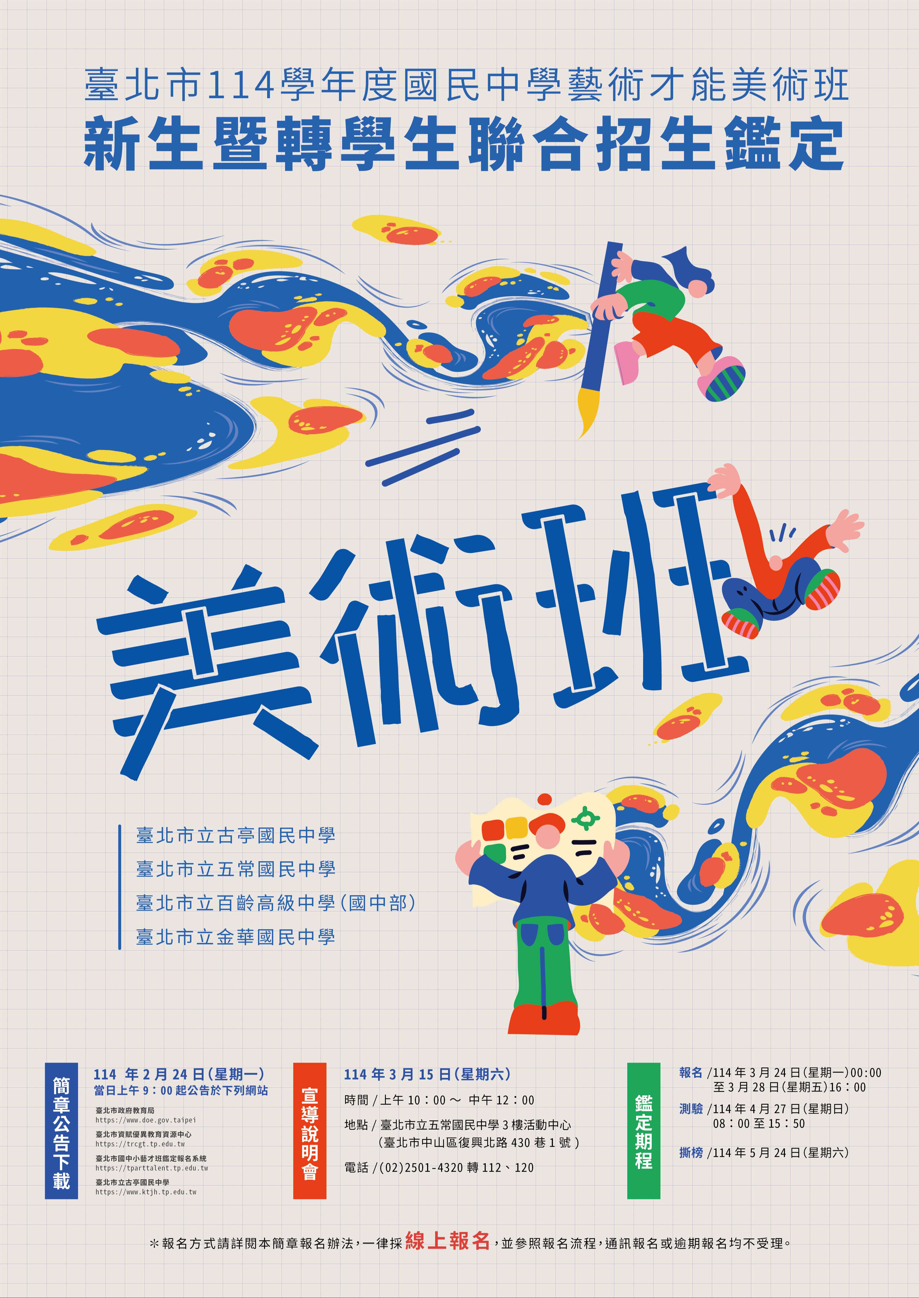 臺北市114學年度國民中學藝術才能美術班新生暨轉學生聯合招生鑑定海報
