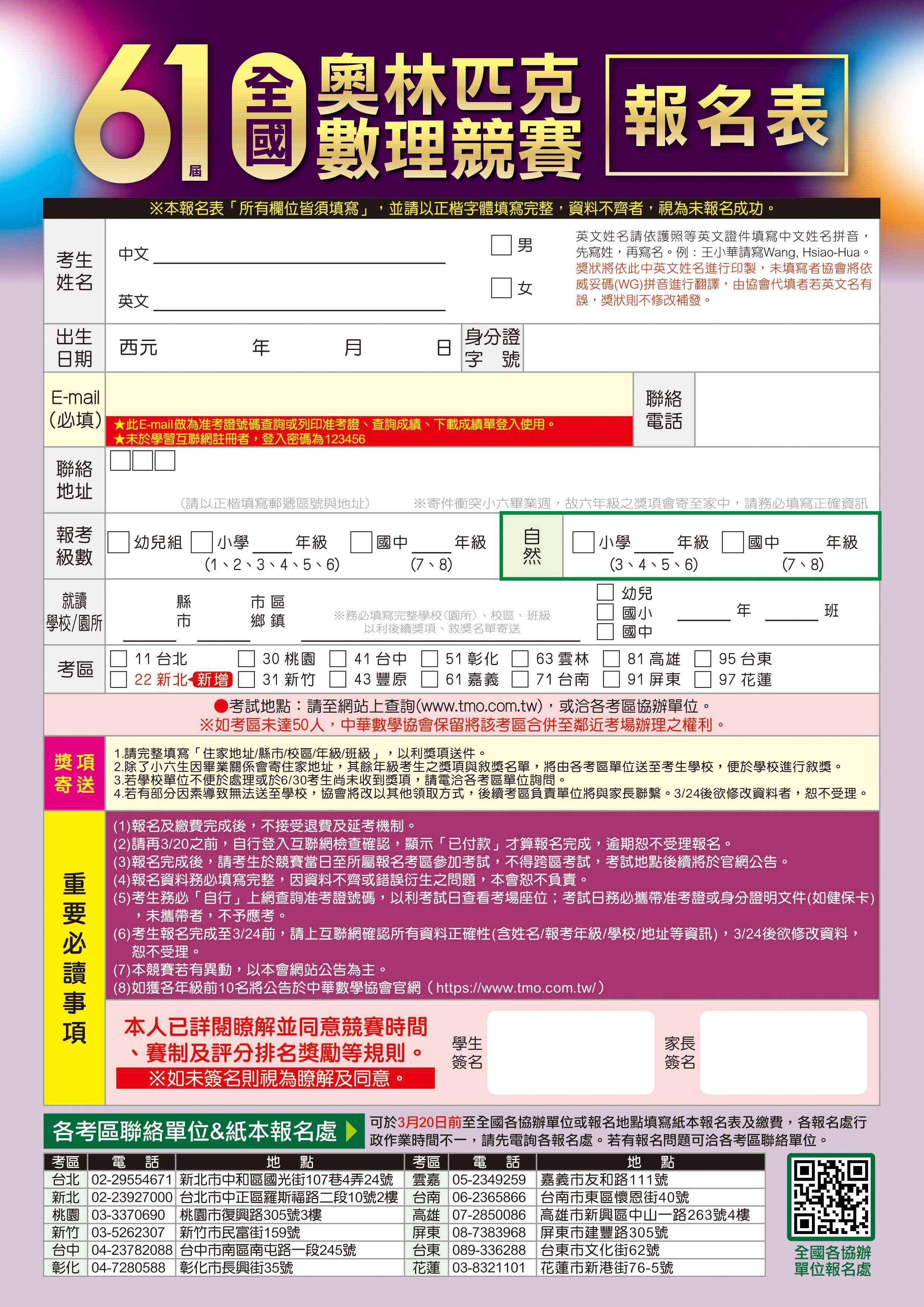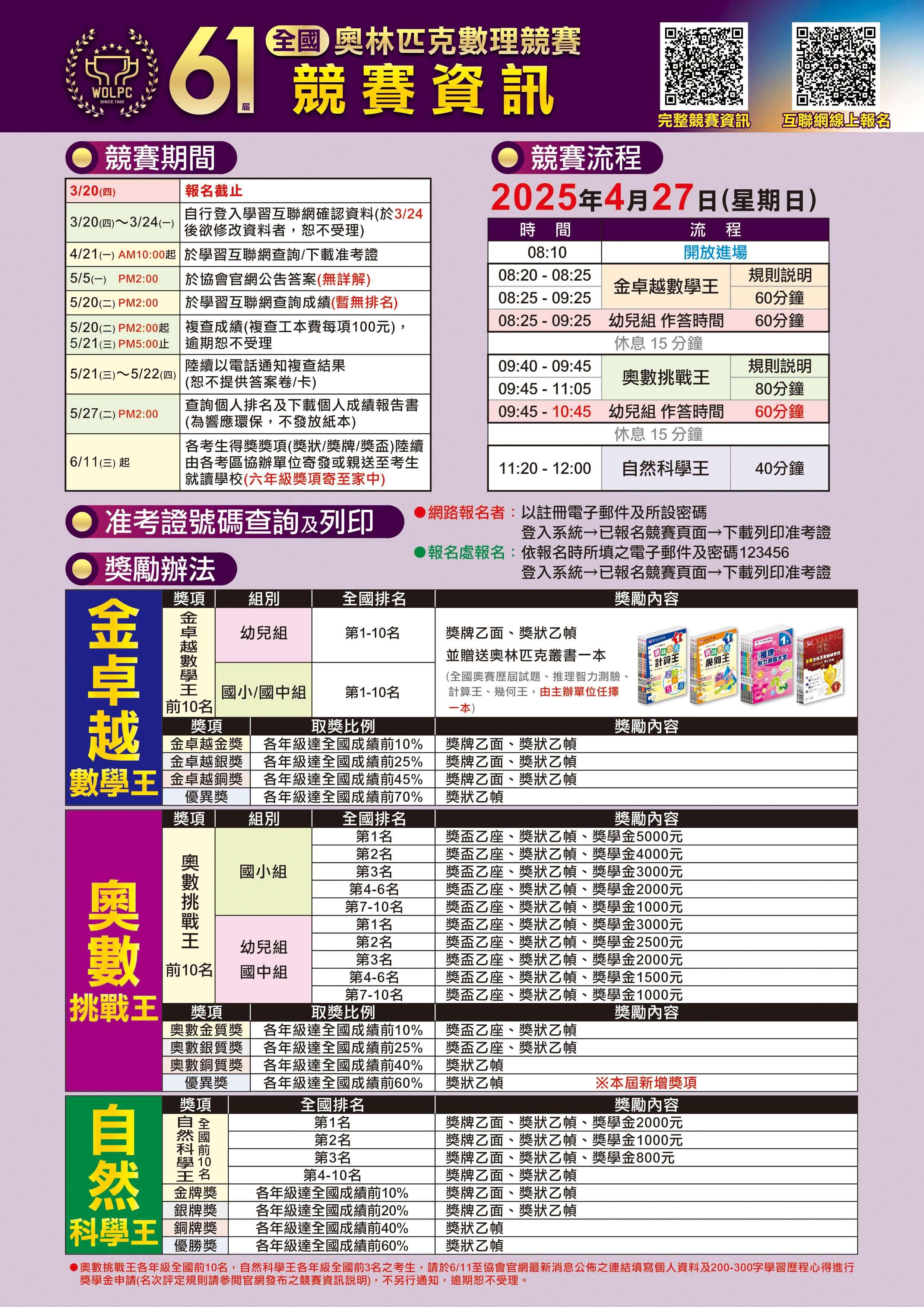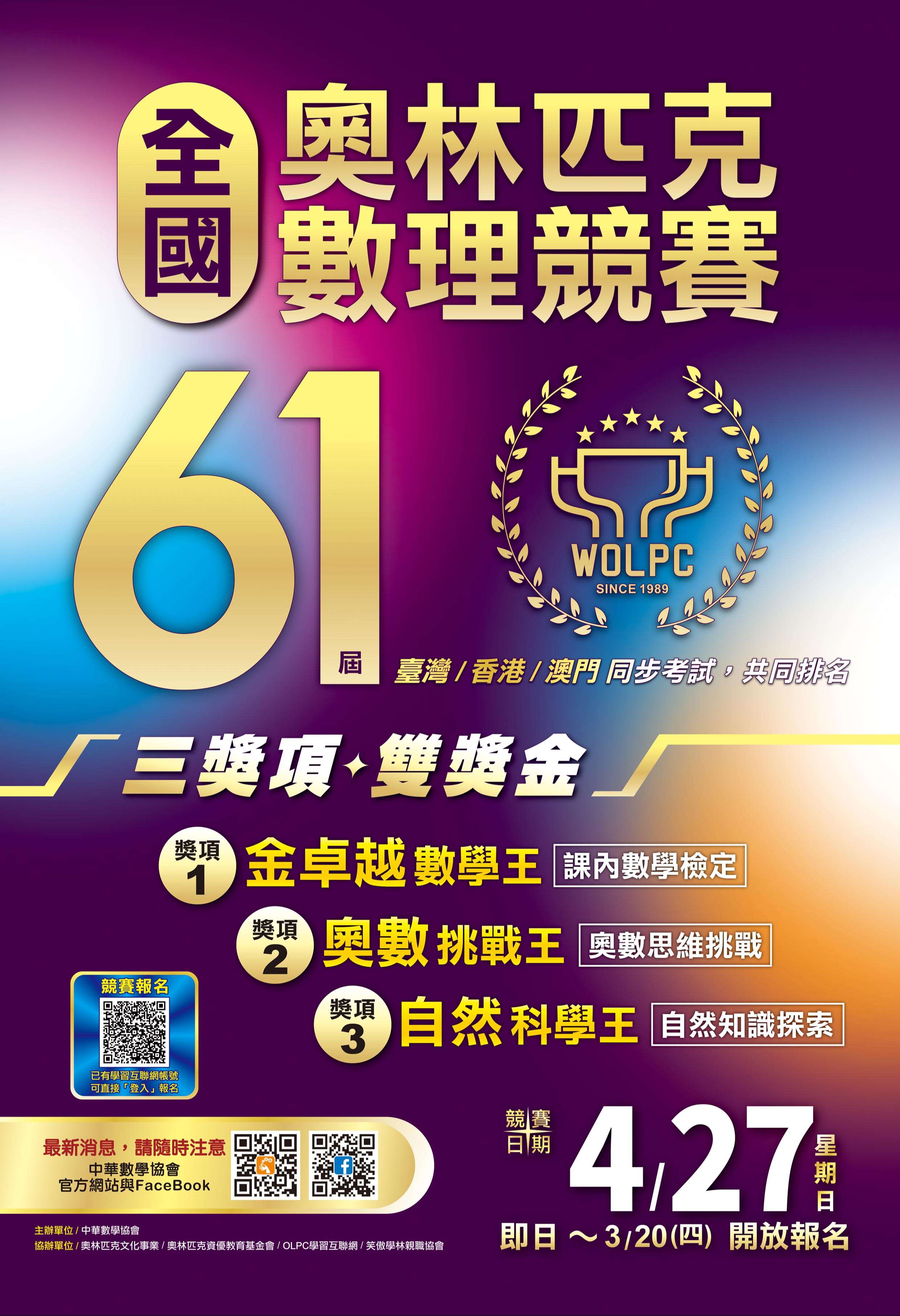 二、檢附「第61屆全國奧林匹克數理競賽」競賽活動簡章,供