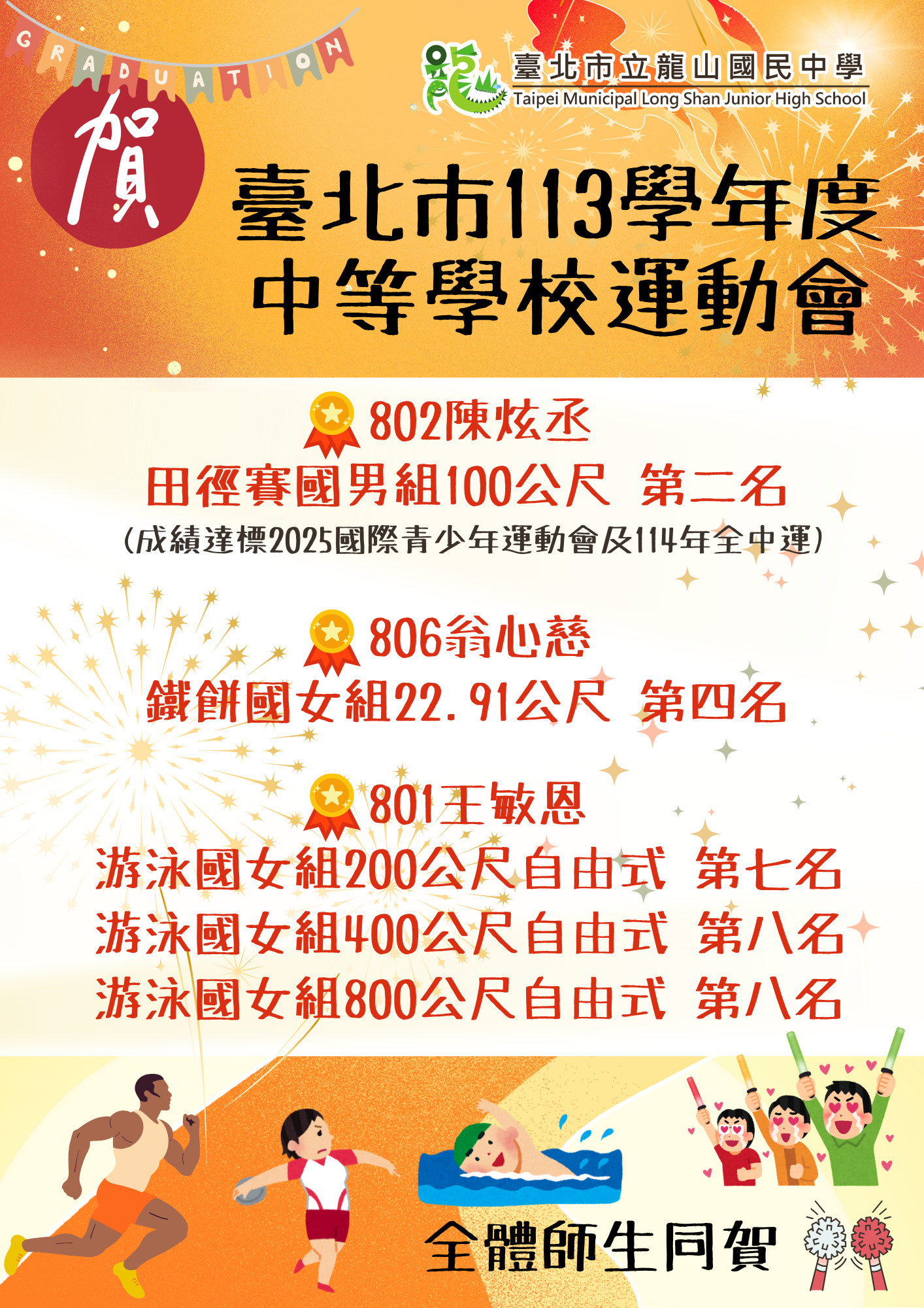 🎉802陳炫丞 田徑賽國男組100公尺 第二名