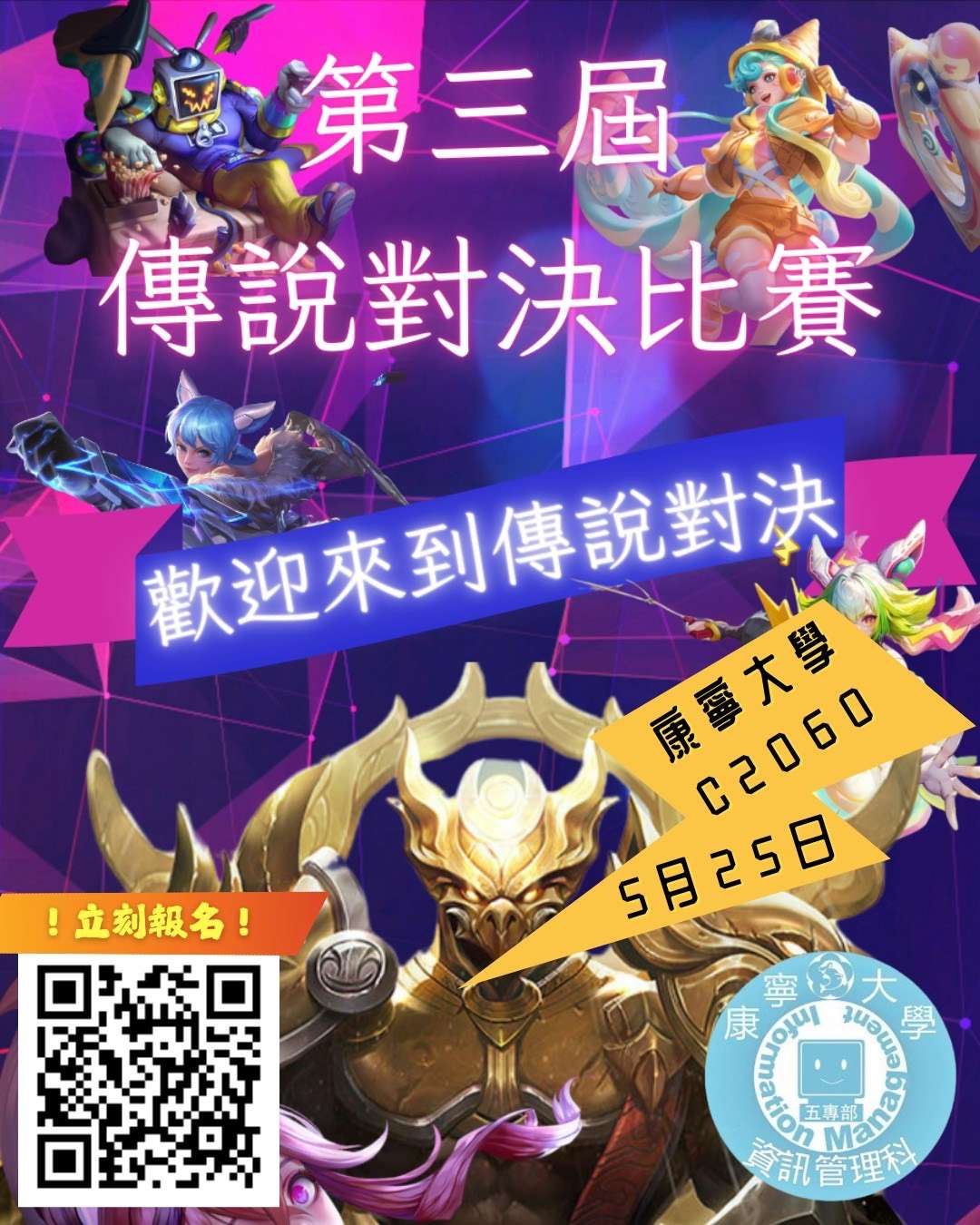 二、本活動由康寧大學資訊管理科主辦,採用手機遊戲《傳說對決》作為競賽平台,進行5對5團體競賽。