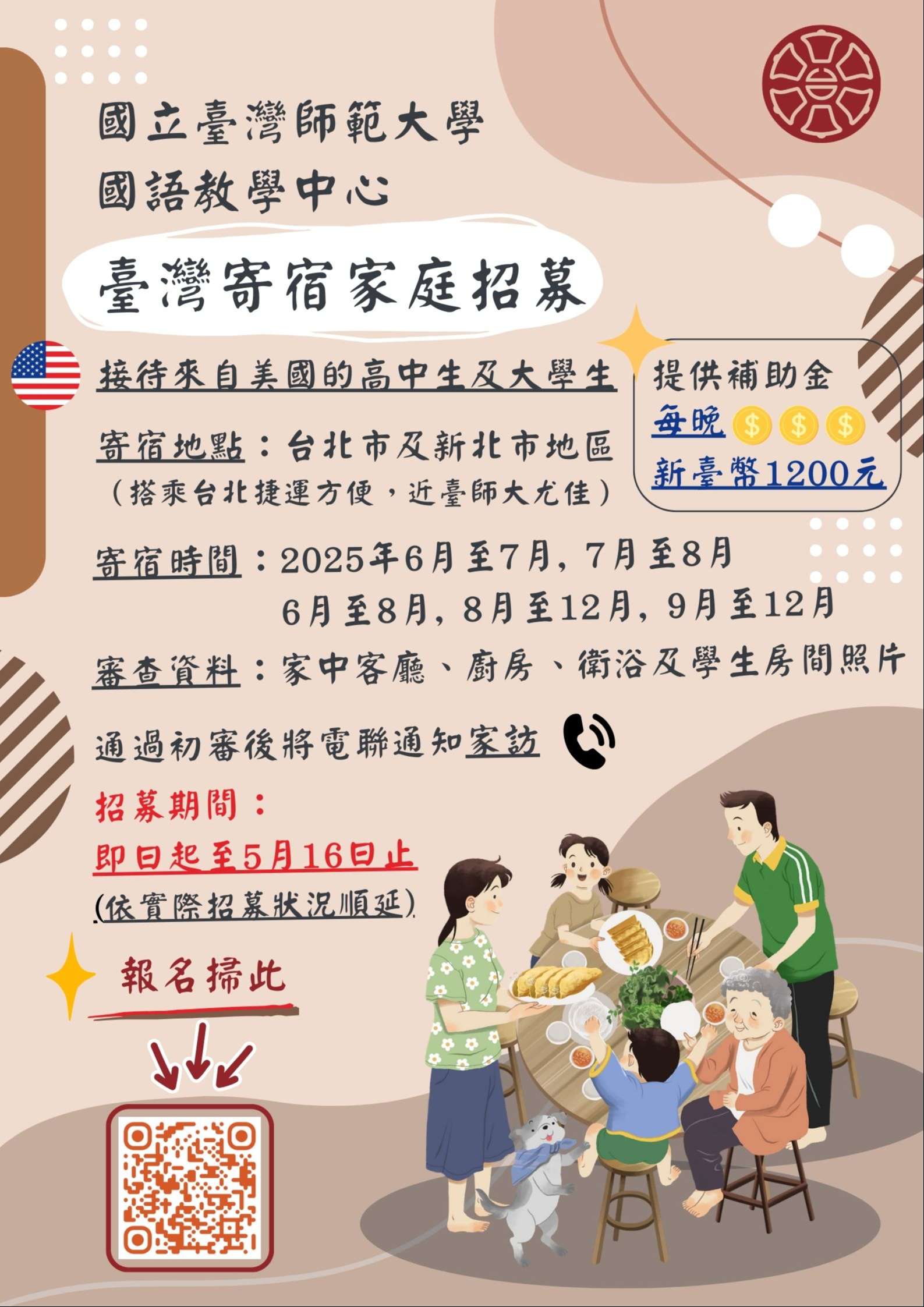 尋找對認識美國文化、並願意敞開家門的臺灣家庭,以提