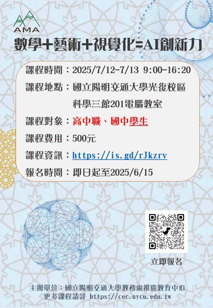 一、旨揭課程融合數學 × 藝術的視覺化創作精神,結合